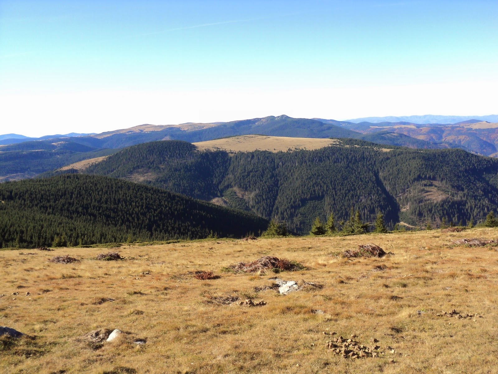 Traseu: Pasul Gutâi – Hanul Pintea Viteazul (983) – Poiana Boului – Creasta Cocoșului (1428) – bandă roșie