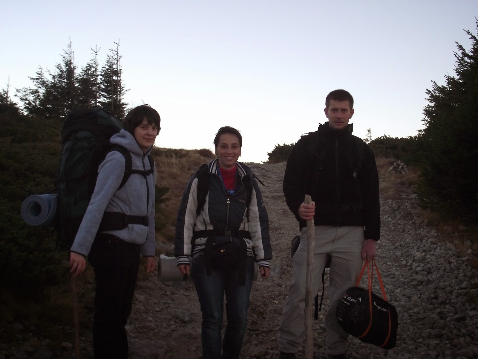 Suntem 4 voinici (3 voinice si un voinic) + 1 prof. Drumul e o adevarata placere pana sus, recunosc ca la un moment dat incepea sa ma chinuie rucsacul dar pentru rasaritul de soare care ne-a calauzit pasii a fost perfect.